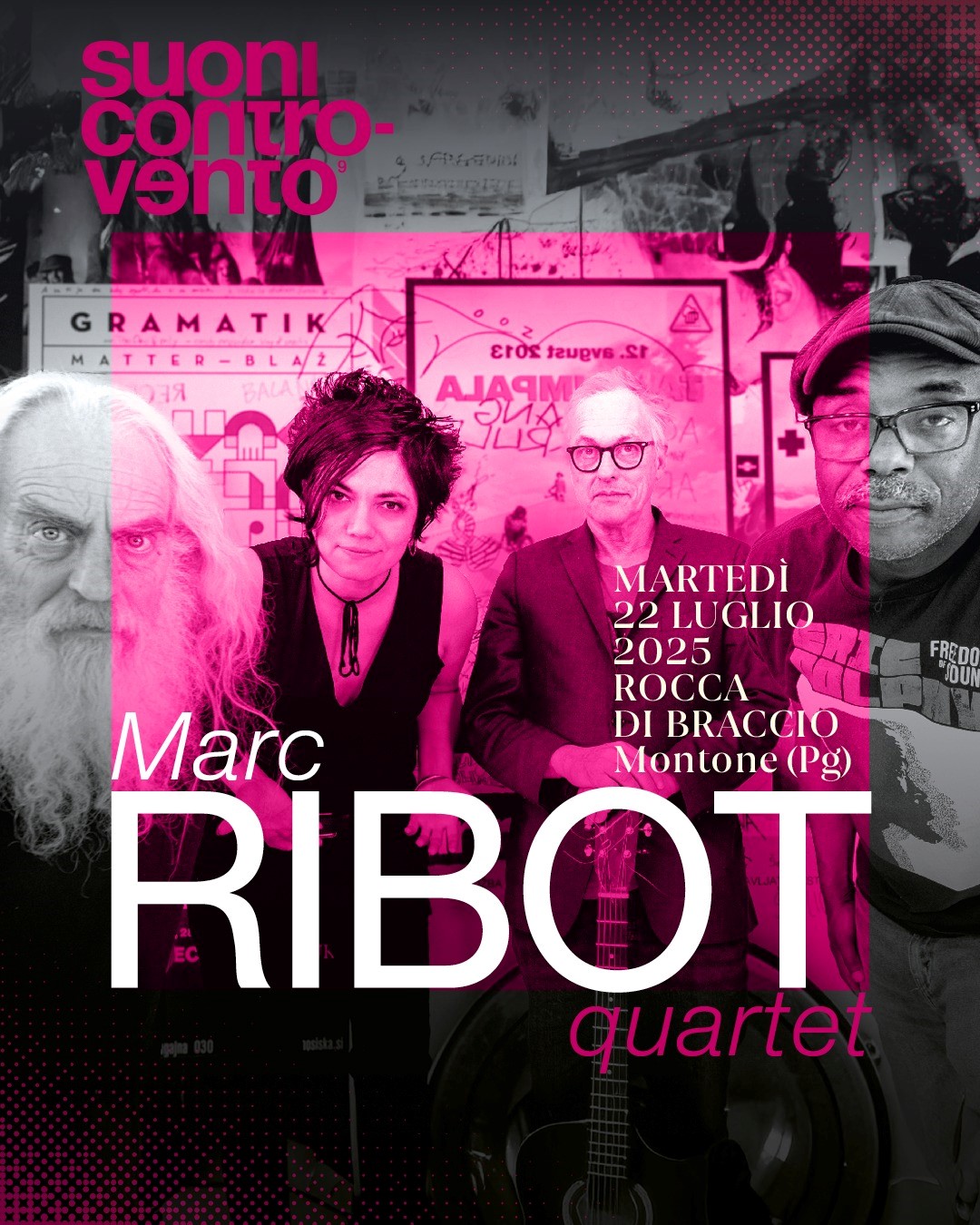 Il secondo appuntamento è previsto per la sera di martedì 22 luglio e avrà come protagonista la musica dal vivo con il concerto del Marc Ribot Quartet, che presenterà il suo nuovo progetto Hurry Red Telephone nella suggestiva cornice della Rocca di Braccio. L’inizio è fissato per le 21. Un concerto che unisce musica potente e un luogo autentico, dove il tempo sembra rallentare. Sul palco, insieme a Marc Ribot, saliranno Chad Taylor, Sebastian Steinberg e Ava Mendoza, musicisti straordinari capaci di muoversi tra improvvisazione, groove e libertà assoluta. Il concerto promette di essere viscerale e autentico, senza filtri, un invito all’ascolto profondo in un contesto che amplifica ogni emozione.